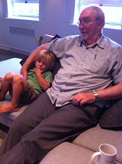 Henry and his Opa catch the last few minutes of something really good on TV. Grandpa Peter was on a visit to the States.
